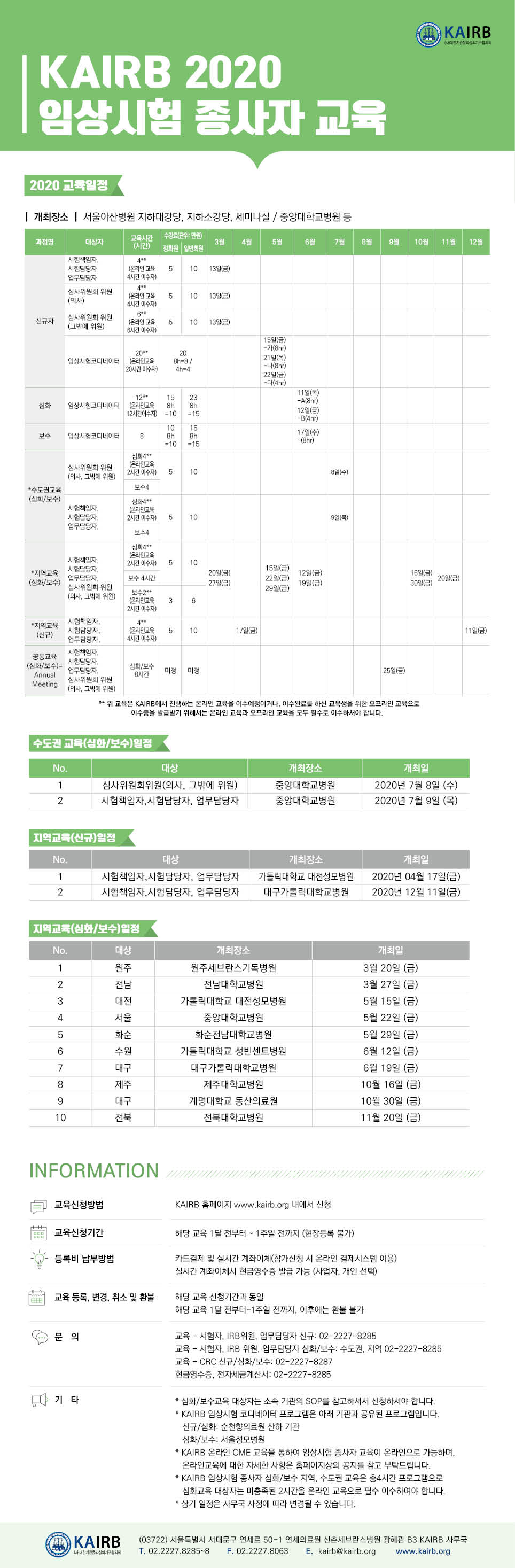 2020년 임상시험종사자 교육 KAIRB 개설 (지역포함)