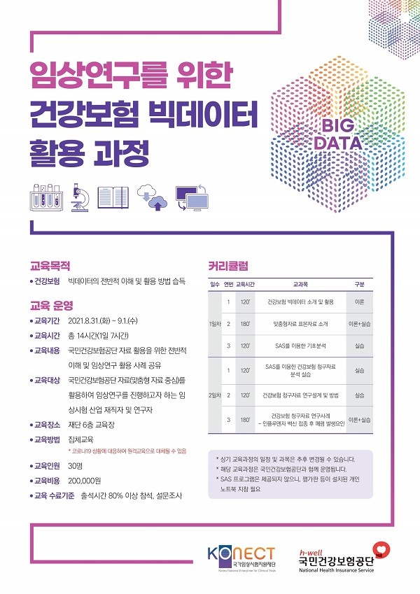 | [KoNECT] 임상연구를 위한 건강보험 빅데이터 활용과정 안내(8.31.~9.1.) | ||