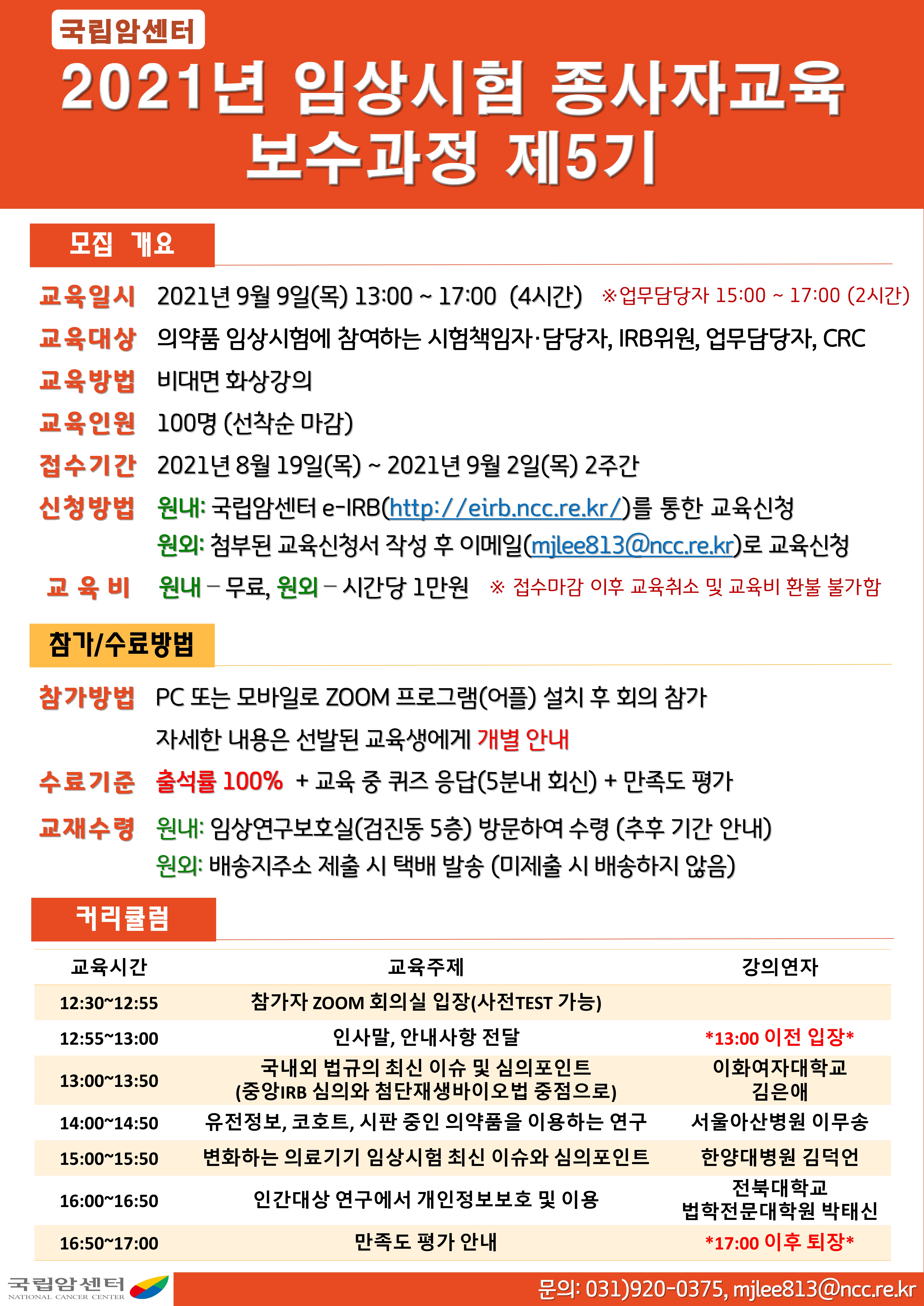 | [국립암센터] 2021년도 임상시험 종사자교육 보수과정 (9월 9일) 시행 안내 | ||