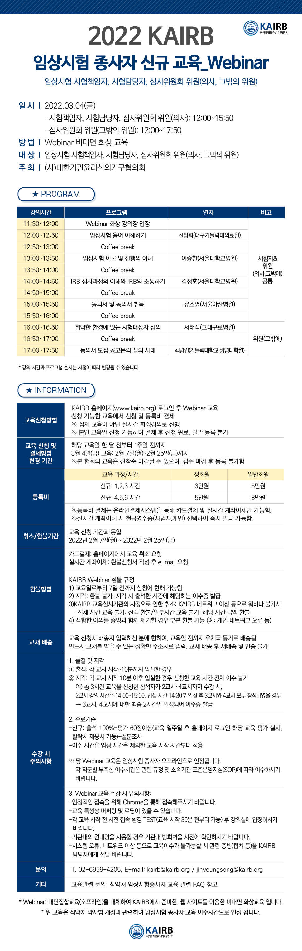 [KAIRB] 3/4(금) 2022 임상시험 종사자 신규 교육 신청 안내_Webinar