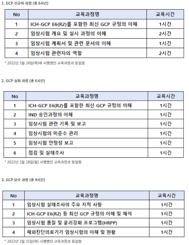 4월 26일(화) 10:00부터 'GCP(신규자/심화/보수) 온라인 과정'이 개설되오니 참고 바랍니다.