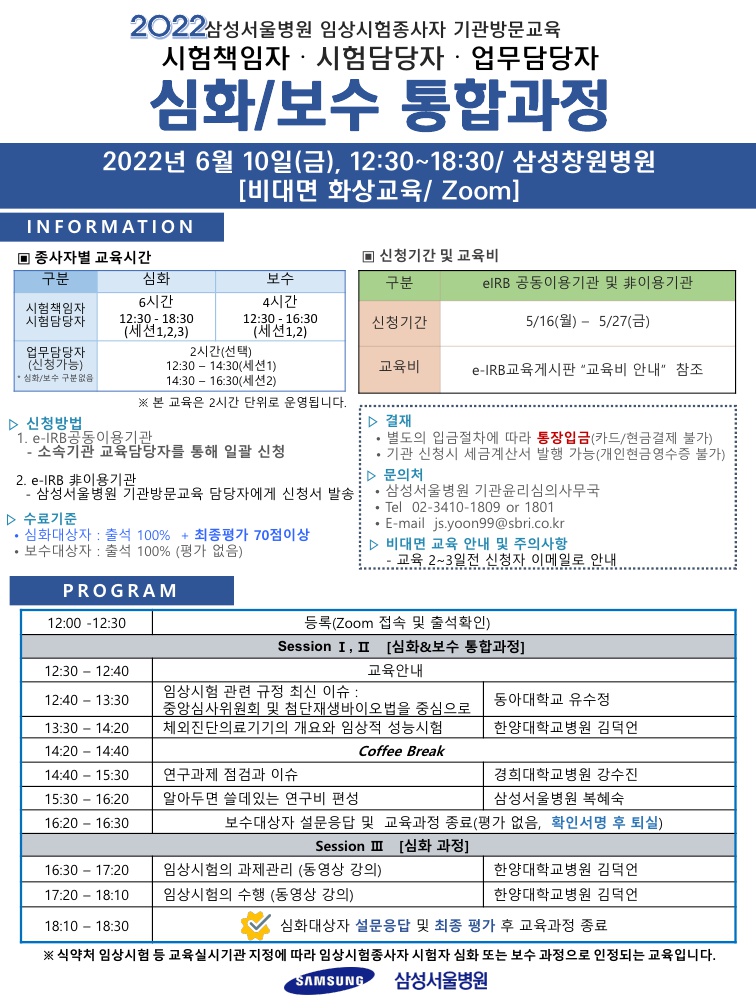 임상시험종사자교육 『시험자책임자·시험담당자 - 심화&보수 교육』 6/10(금),