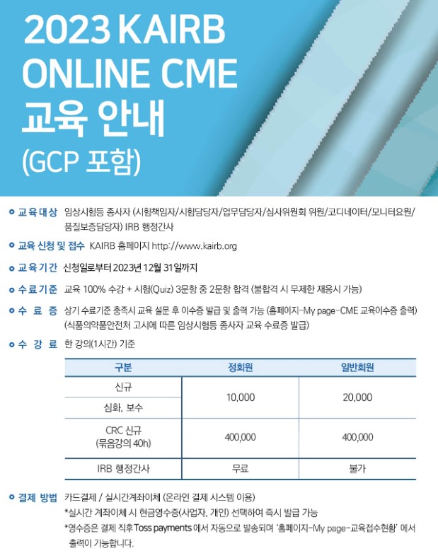 [KAIRB] 2023 KAIRB 온라인 CME 교육 안내 (GCP 포함)