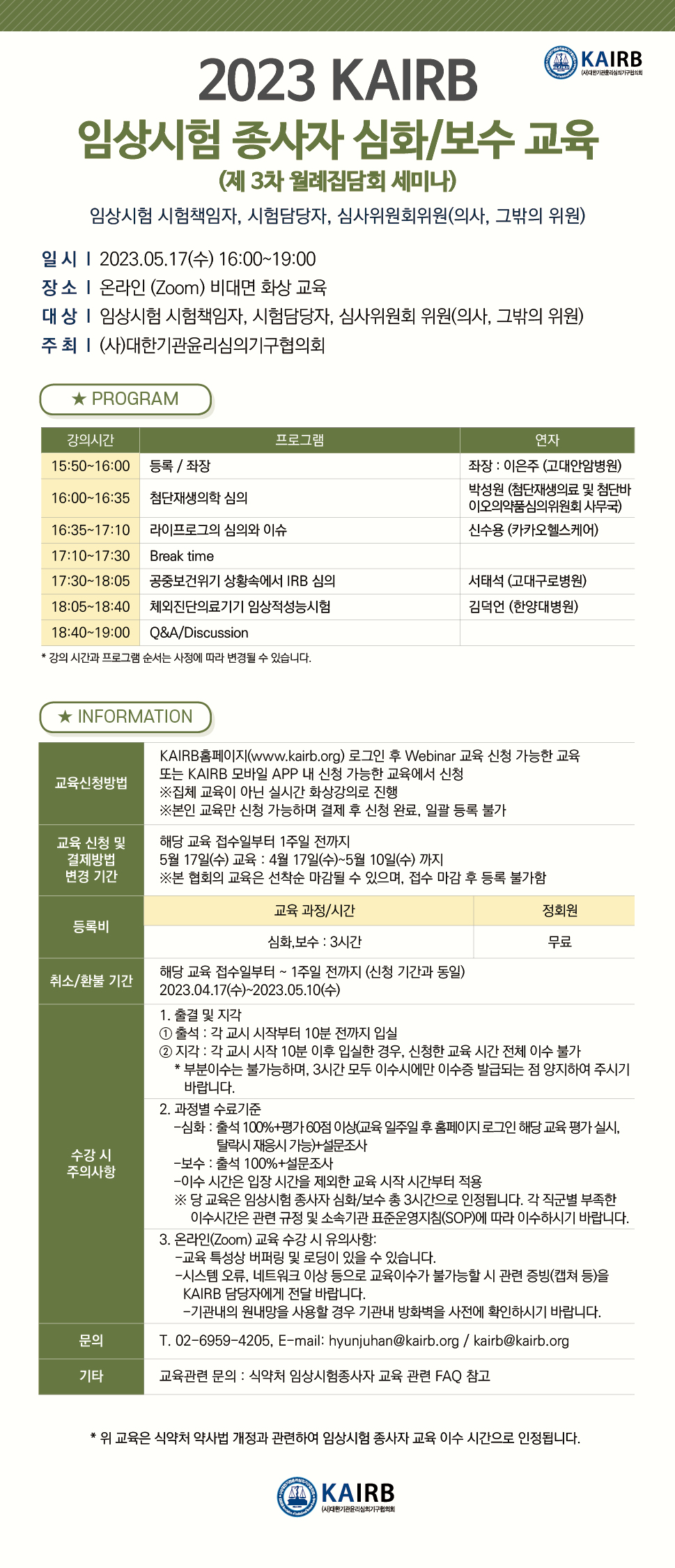 -온라인 변경-[KAIRB] 5/17(수) 2023 제3차 월례집담회 세미나 신청 안내