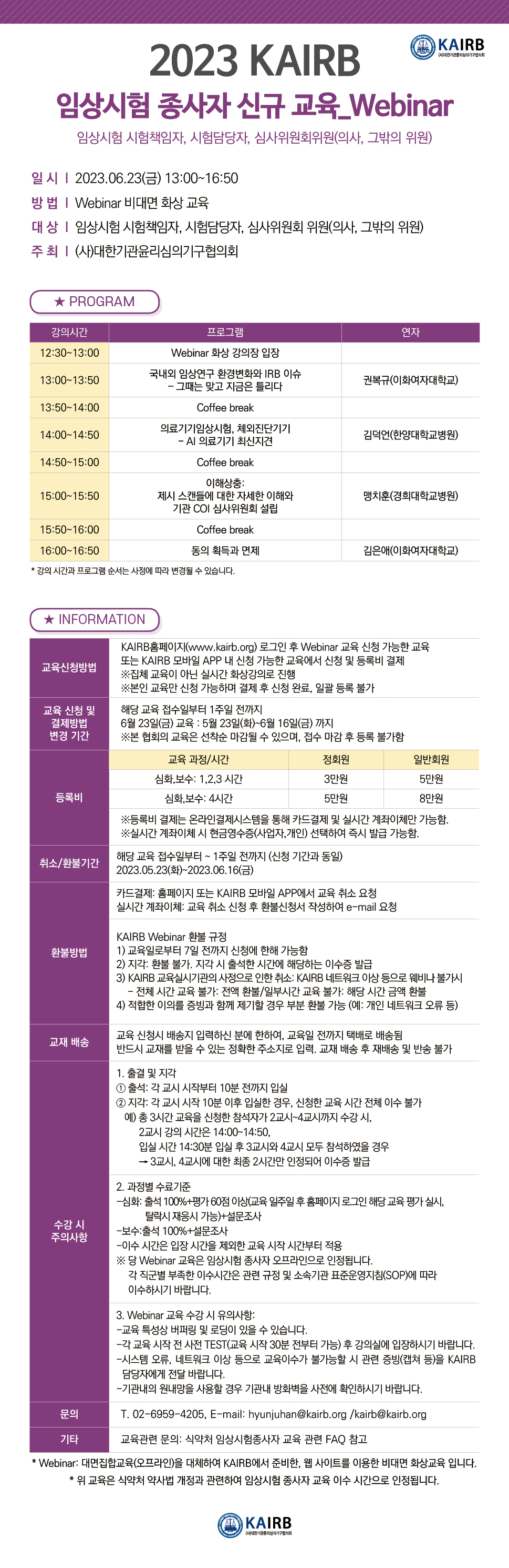 [KAIRB] 2023 시험자, 심사위원회위원 임상시험 종사자 심화/보수 교육(23.06.23)
