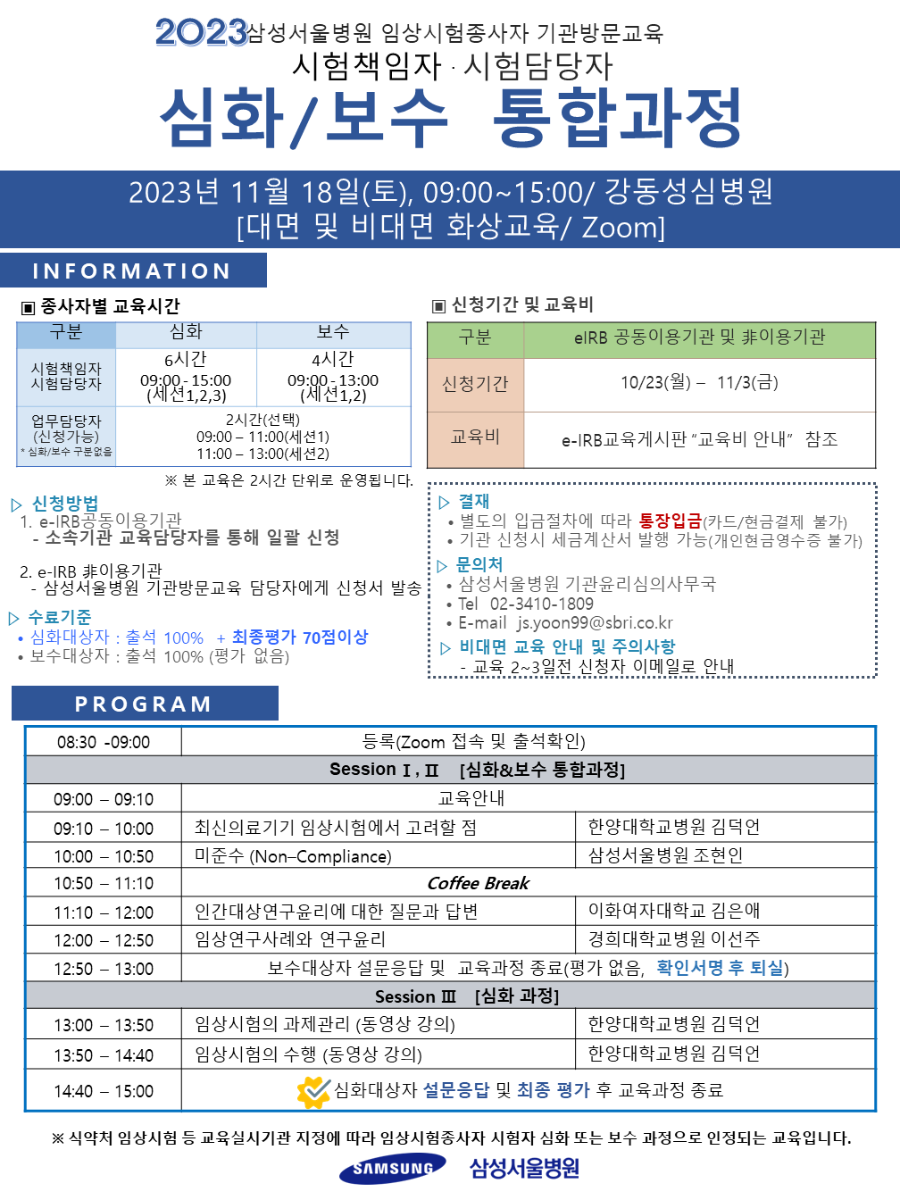 | [강동성심병원] 11/18(토), 시험자 심화&보수교육 안내 | ||