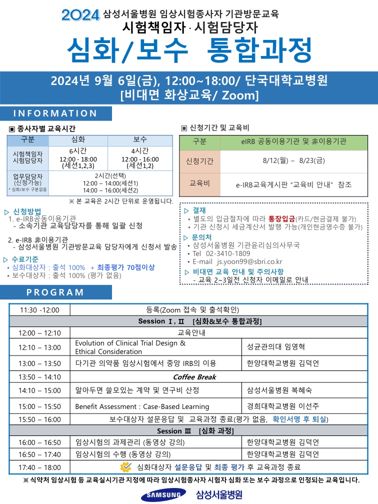 | [단국대학교병원] 9/6(금), 시험자 심화&보수교육 안내 | ||